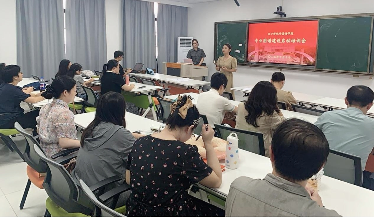 为深化专业建设与教学改革,提升人才培养质量,落实学校专业图谱建设工作部署,2025年10月10日下午,汉口学院外国语学院在六号教学楼651103教室组织召开专业图谱建设启动培训会。学院英语专业骨干教师及各专业课程负责人参加培训。会议由付小玲副院长主持,特邀武汉超星数图教育科技有限公司的黄宇和吴欣盈两位专家担任主讲。