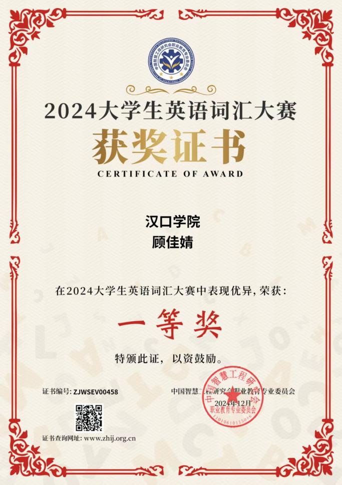 2024年 大学生英语词汇大赛 一等奖