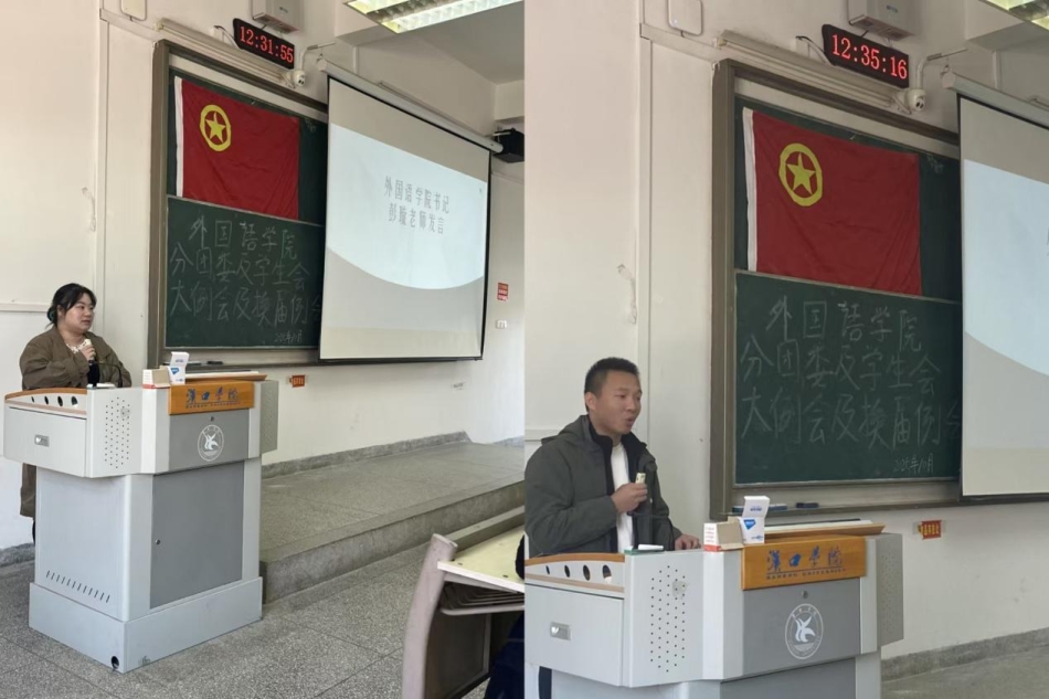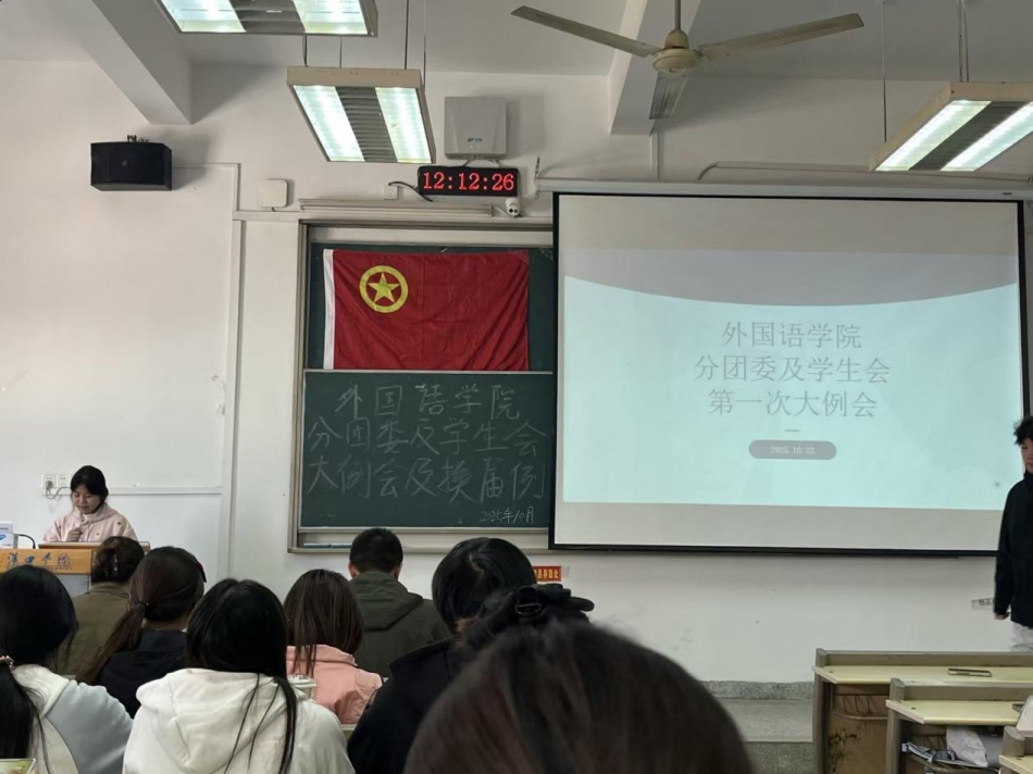 金秋时节,万象更新。为明确新学期工作方向、凝聚学生组织力量,外国语学院分团委及学生会第一次大例会暨换届大会于10月22日在一号教学楼顺利召开。本次大会由礼仪中心田潇主持,学院党总支书记彭璇、学生第一党支部书记吴昊天、分团委书记廖祉沐、心理中心负责人丁梦颖四位老师受邀出席,全体分团委及学生会成员参会。