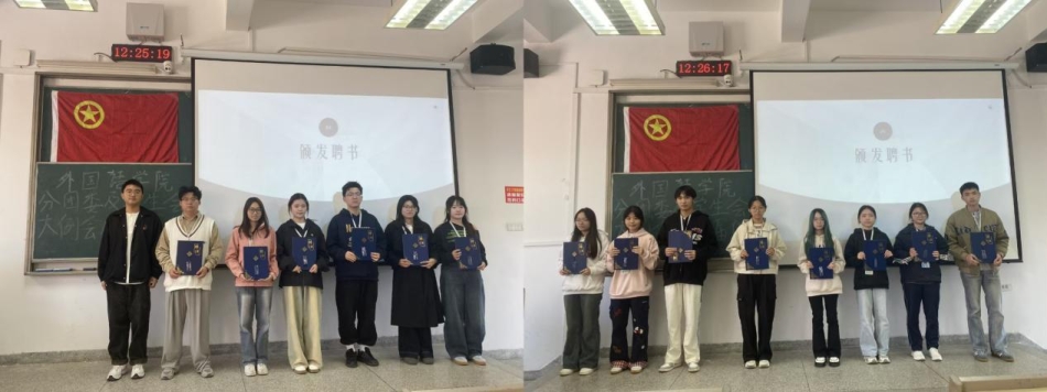 随着各项议程圆满完成,主持人宣布本次大会正式结束。全体参会人员留在原处合影留念,定格下这一凝聚力量、开启新篇的重要时刻。此次大会不仅完成了学生组织的换届交接,更明确了新学期的工作方向,为外国语学院分团委及学生会接下来的工作奠定了坚实基础。