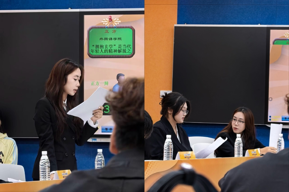 在自由辩论中,外国语学院代表队紧密配合,多次以实证数据与文化现象为例,强调玄学在当代青年生活中的现实意义。他们指出,从寺庙游览热潮到线上塔罗互动,从“转发锦鲤”到“择吉行事”,玄学已逐渐成为年轻人构建心理支撑、寻求社群共鸣的重要方式。